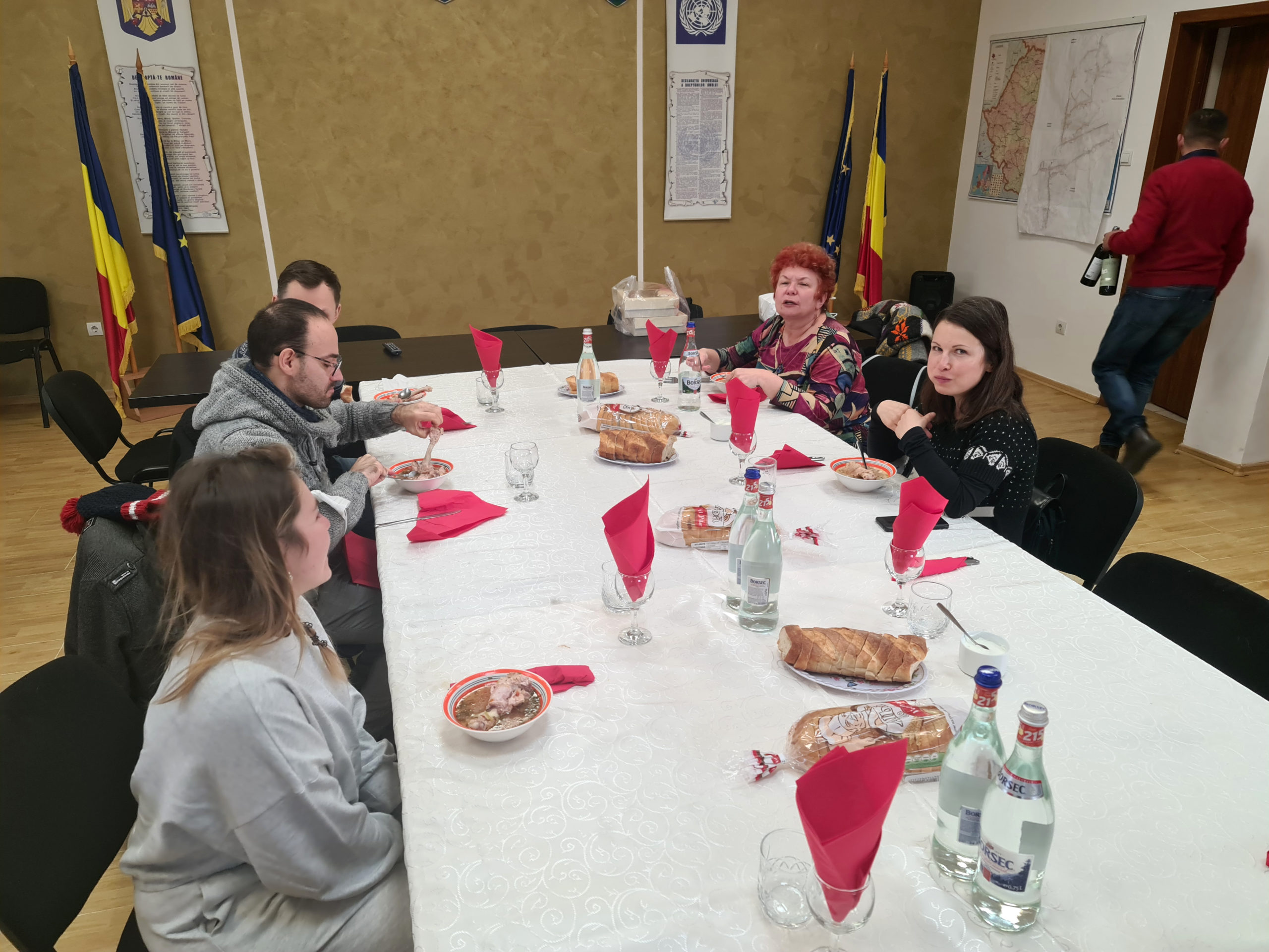 El 27/01 visitamos tres municipios vecinos y muy diferentes, concretamente Ramnicu Valcea, la capital de la provincia, donde nos recibió el teniente de alcalde, Galicea y Cernisoara. Ramnicu Valcea es una ciudad desarrollada con muchos proyectos de educación ambiental en las escuelas y donde el consumismo tras el fin del régimen dictatorial de Caucescu ha provocado graves dificultades para limitar los residuos de los habitantes, según el teniente de alcalde. Entre los proyectos que se llevan a cabo, está el piedibus, donde los niños aprenden a liderar una cadena humana para cruzar la carretera de forma segura y sin utilizar medios contaminantes; el día de la prohibición del tráfico contaminante, donde no se puede coger el coche para ir al centro de Ramnicu Valcea; la recogida de residuos electrónicos en los colegios, donde también se educa de forma que se transmita la ética medioambiental a todos los hogares. Nos han señalado las dificultades que encuentra el municipio con la recogida de residuos: las empresas privadas no responden a las peticiones del municipio como la de crear recogidas más diferenciadas y también el hecho de sufrir fuertes impuestos que no pueden ser utilizados como herramienta coercitiva sobre la sociedad privada porque depende del estado central.